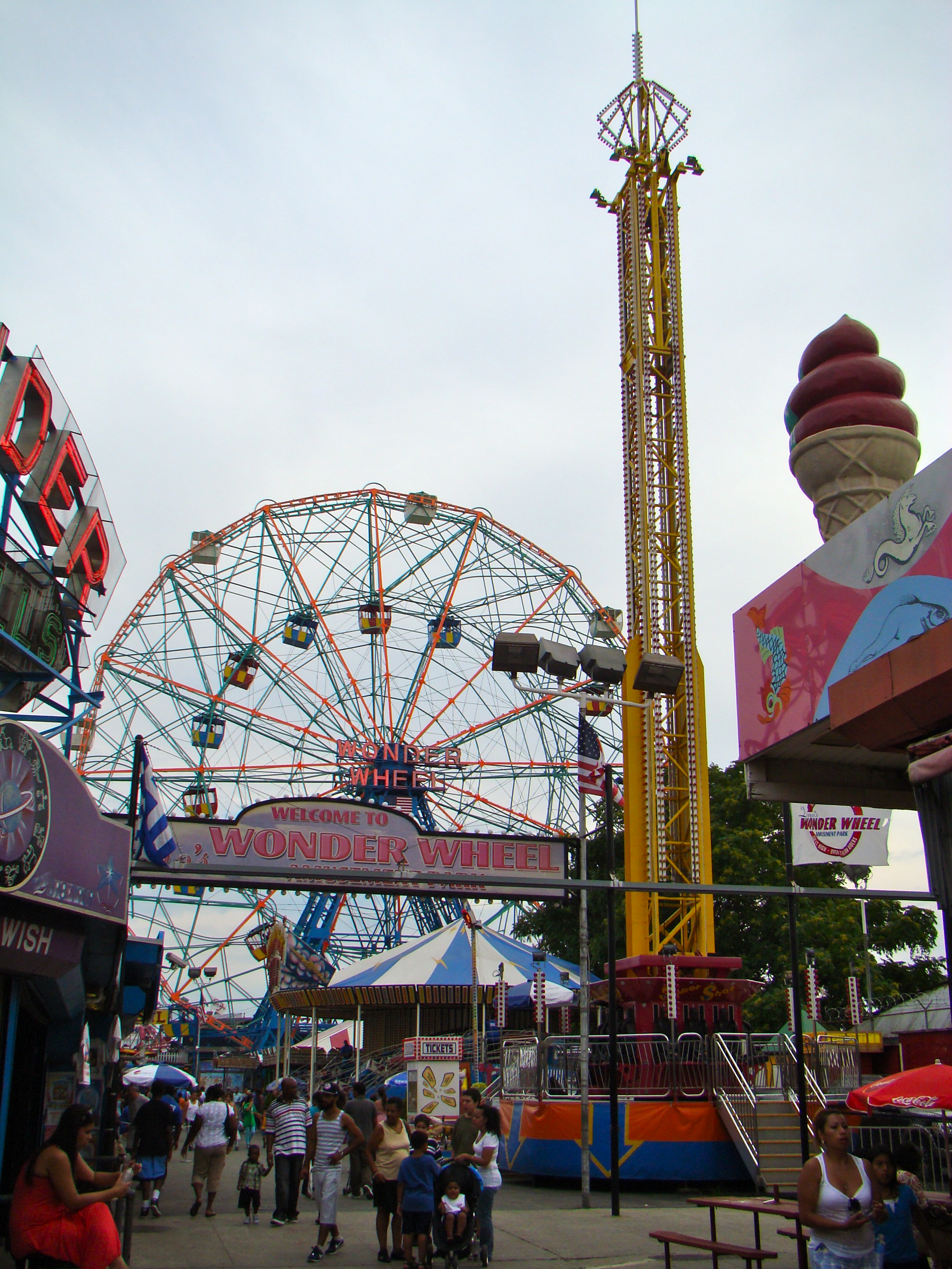 Es una pequeña península (que no una isla) al sur de Brooklyn, popular por la playa y su histórico parque de atracciones, y sin embargo la mayoría no vamos allí a disfrutar de ninguno de ellos en concreto. La playa y el agua están bastante sucias, y las atracciones y puestos llevan ya años sin renovarse, y precisamente por todo eso, Coney Island tiene un encanto especial.